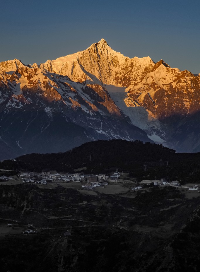 第二天早起是必须的!6:30准时冲向上雨崩观景台,只为那10分钟的“日照金山”黄金时刻。当第一缕阳光打在卡瓦格博峰顶,整座雪山瞬间镀上金边,那一刻你会觉得:熬夜、早起、高原反应……全都值了!这哪是看风景,分明是灵魂被温柔地摸了摸头。